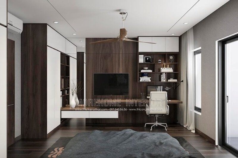 Thiết kế nội thất phòng làm việc sang trọng với sự kết hợp hài hòa của đồ nội thất mang đến một không gian làm việc lí tưởng